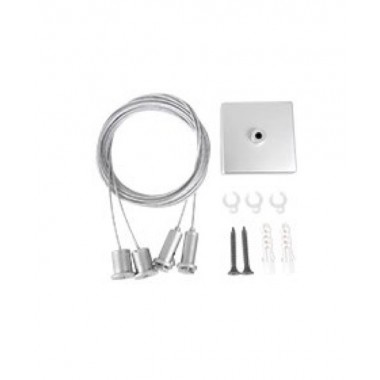 Kit suspensión fabricado en acero. Longitud 4 metros. Incluye base para la instalación del cable de toma de corriente. Dando una estética más cuidada.