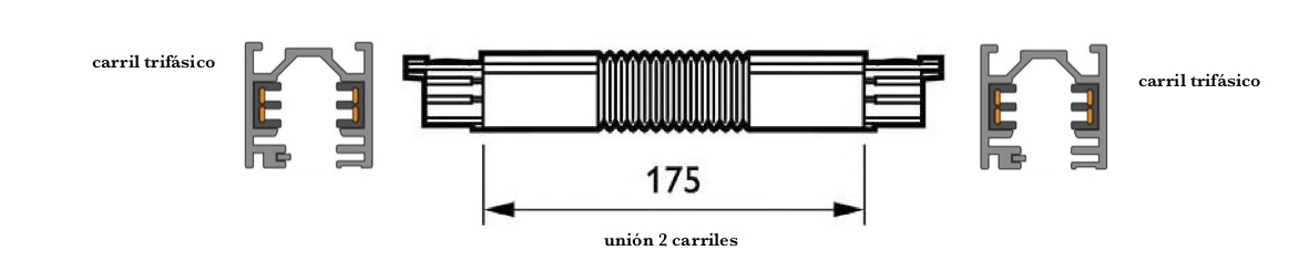 Conector de unión flexible de 0º a 360º para unir eléctricamente dos carriles con ángulos variables.