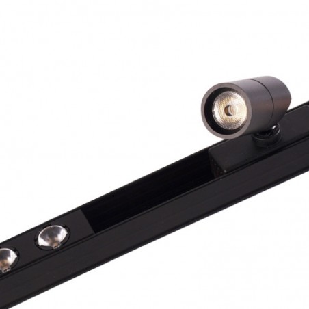 Se utiliza principalmente para la iluminación de productos en vitrinas de joyerías, relojerías, museos y mobiliario. Un ángulo de luz de 30º, que nos garantiza todo el protagonismo al producto que queremos destacar. Debe usarse junto con un perfil de pista magnética que puede ser redondo, plano, de superficie o de empotrar. Necesita fuente de alimentación a 24V con la potencia que necesitemos, que dependerá de las unidades que pongamos en uno de los perfiles que escojamos. En nuestra pestaña de accesorios encontrara todo lo que necesite.
