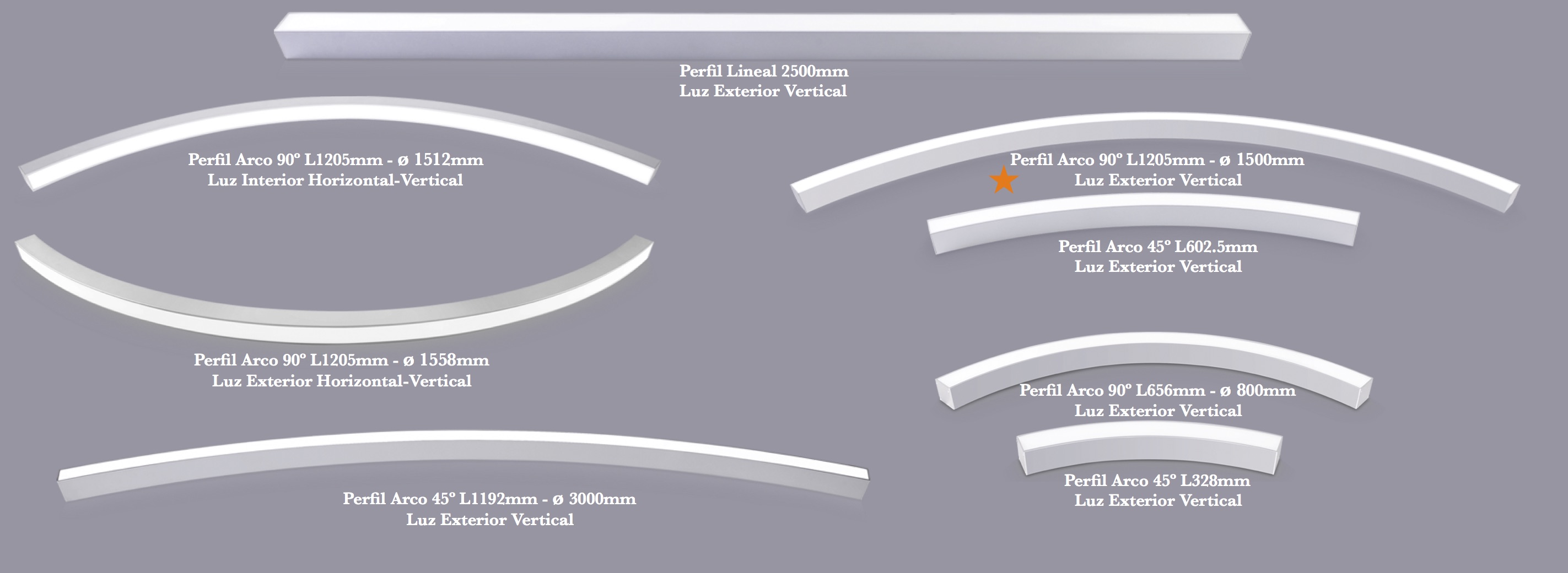 Perfil Arco de 90º. Luz Exterior Vertical L1205mm