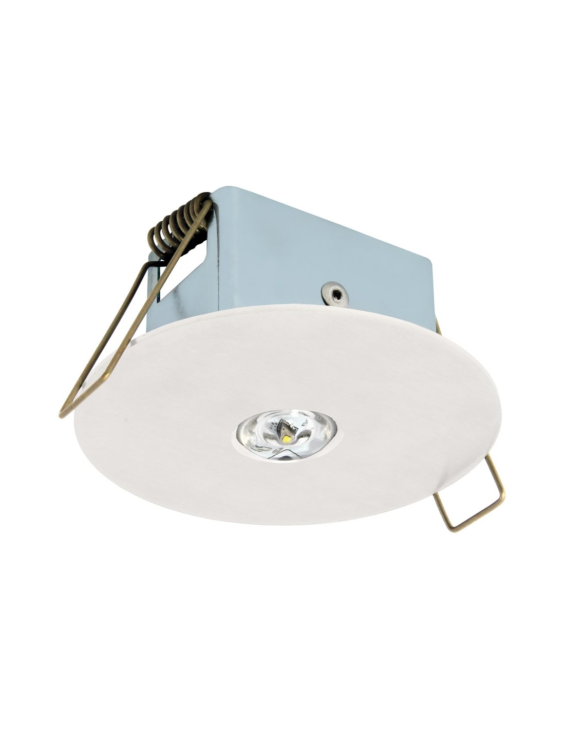 Emergencia LED 1W, 250 LUMEN, Redonda PREMIUM empotrar. Espacios abiertos. No permanente. IP20