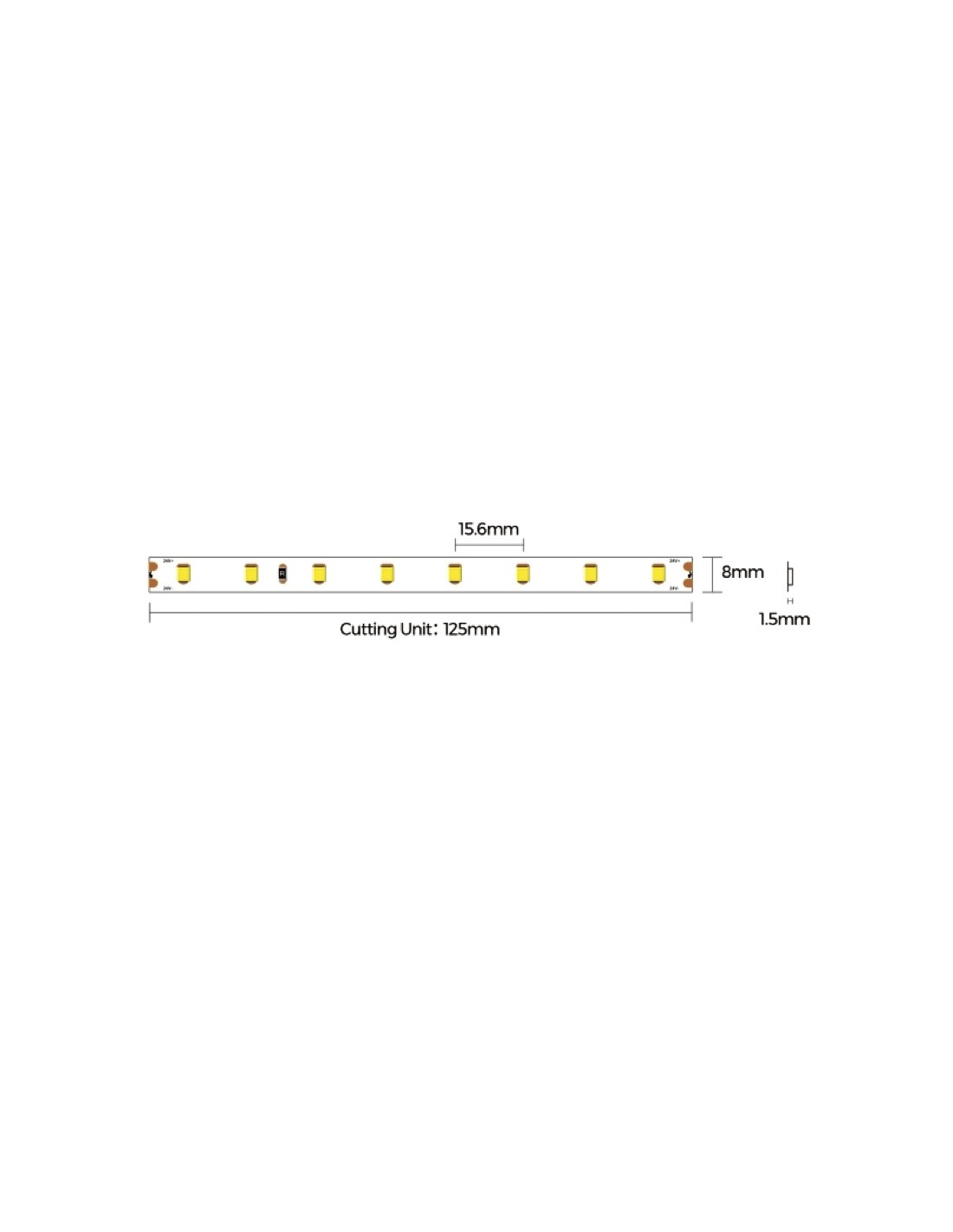 2300 K 582lm 135lm 5000*8*1.5mm 125mm(8LED) 64 LEDs 15.6mm TL86424-3323