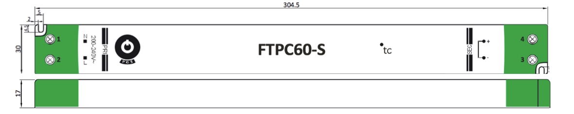 2.5A | >0.90 | Clase II | -20 ~ +45 °C | 180 ÷ 264VAC | 47 ÷ 63Hz | 304.5*30*17mm | Auto-recupercación | FTPC60-2420 |