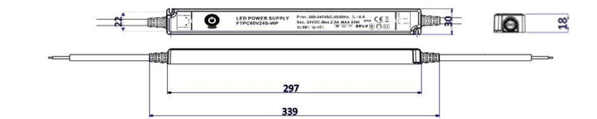 2.5A | >0.90 | Clase II | -20 ~ +45 °C | 180 ÷ 264VAC | 47 ÷ 63Hz | 339*30*18mm | Auto-recupercación | FTPC60-2466 |