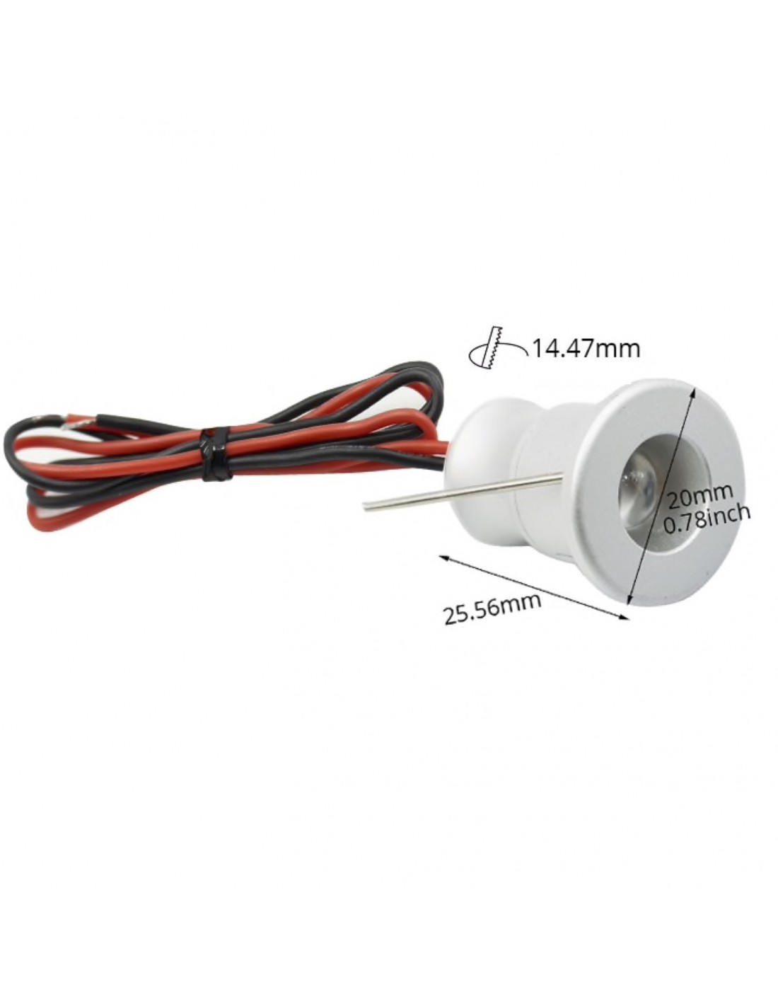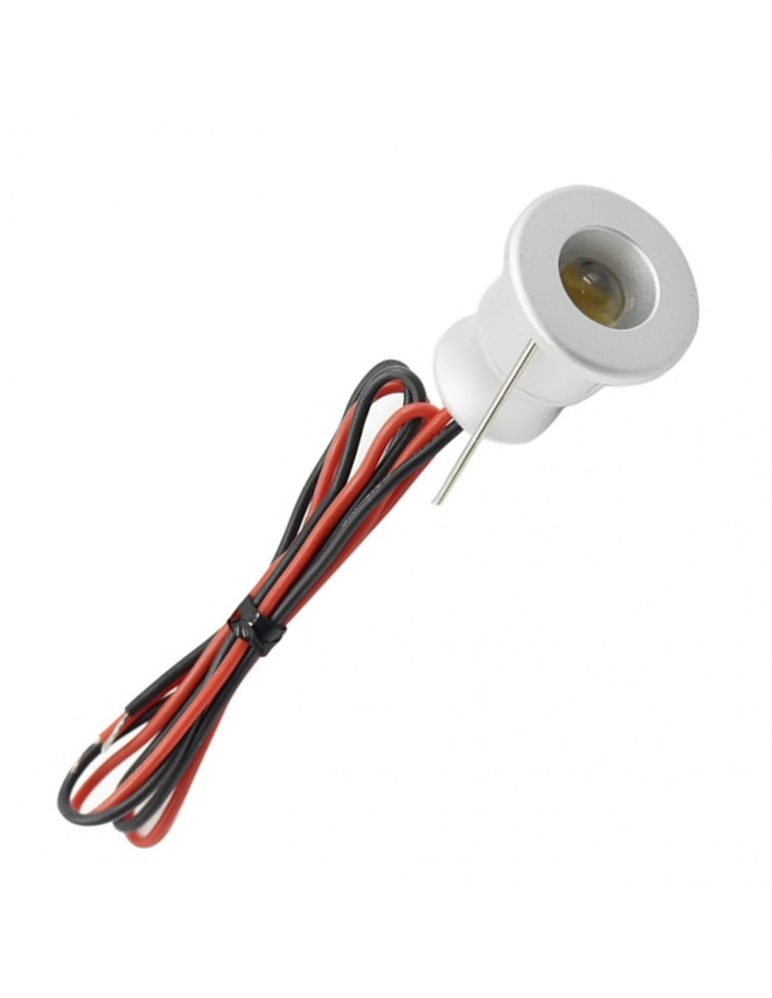 Baliza LED exterior de 1W a 12 voltioss. Para señalizar zonas de paso en terrazas, escaleras, piscinas etc. De tan solo 2cm de diámetro. Ambientes acogedores y seguros. Blanco Cálido. Acabado aluminio.