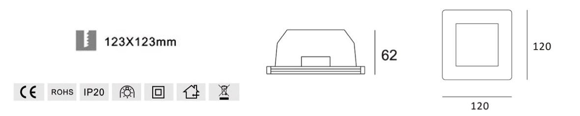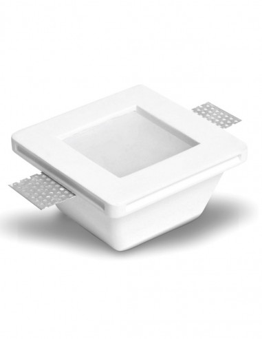 Diseño cuadrado, quedando la bombilla en el interior de la luminaria de escayola. Incluye cristal frontal que cubre la visibilidad de la bombilla. No es necesario instalarlo, si nos gusta más sin el cristal.