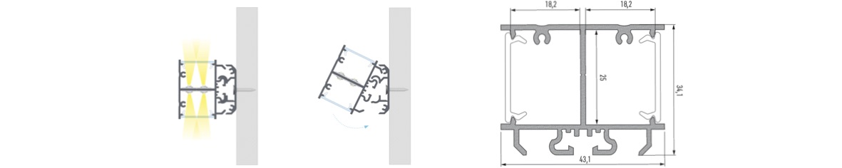 El diseño de este perfil permite crear distintos elementos de iluminación. Apliques de pared, colgantes, lamparas de pie. Es un perfil para iluminación bilateral. Para la iluminación en oficinas, hoteles, etc. Espacios abiertos en general. Una excelente solución para terminar las instalaciones de las Tiras de LED con la mejor garantía. Disipamos de manera óptima la temperatura de calor. Son adecuados para las tiras de LED rígidas y flexibles. Material de alta calidad y dos colores opcionales: Plata y blanco.
